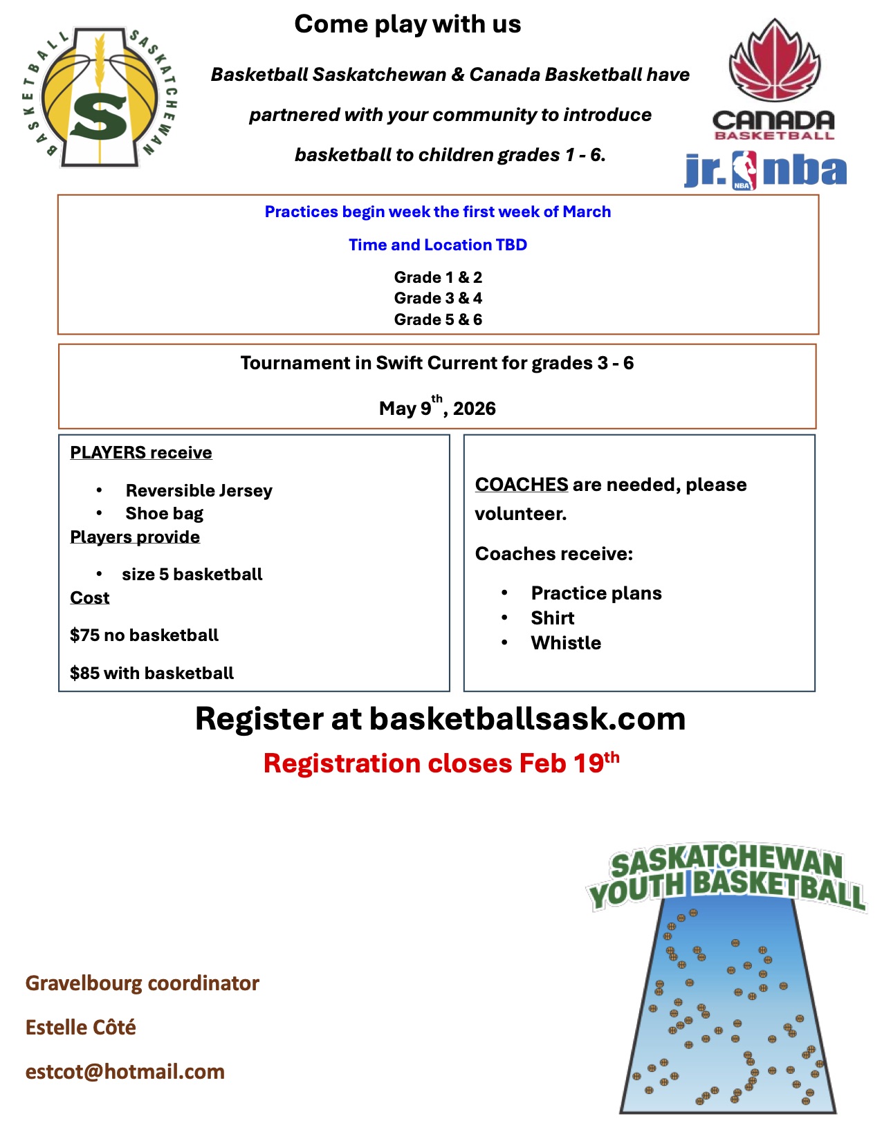 Phone (306) 648-7723 or email denitamorin@gmail.com to register.